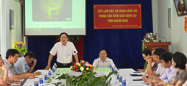 BSCKII.Võ Thanh Tân, Giám đốc Trung tâm Kiểm soát bệnh tật tỉnh Quảng Ngãi phát biểu tại buổi làm việc